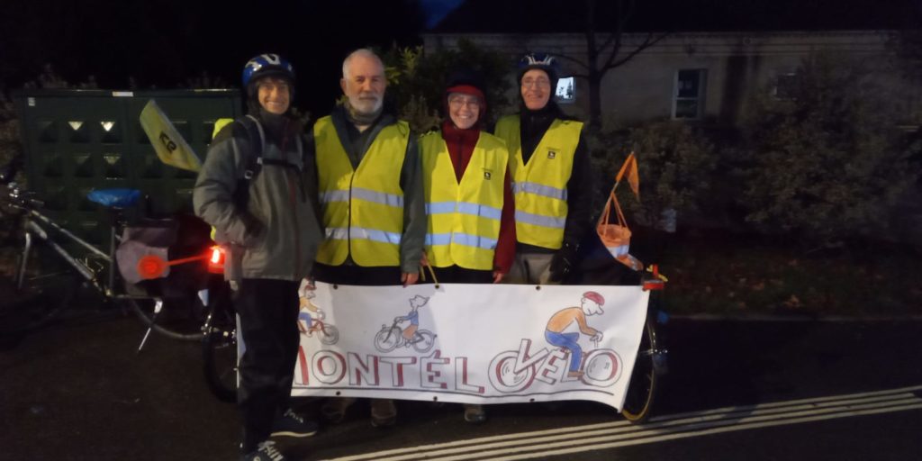 Comme annoncé, Montélovélo a distribué une quinzaine de Kits d’éclairage et plusieurs « protège sac à doc » lors d’une soirée consacrée à la sensibilisation du public à la sécurité « lumineuse » en vélo.